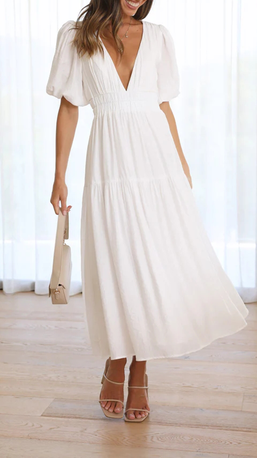 Feel and look beautiful in the stunning Erin Midi Dress. With its pretty silhouette, tiered detailing and statement sleeves this gorgeous dress is a must have in your closet this season.